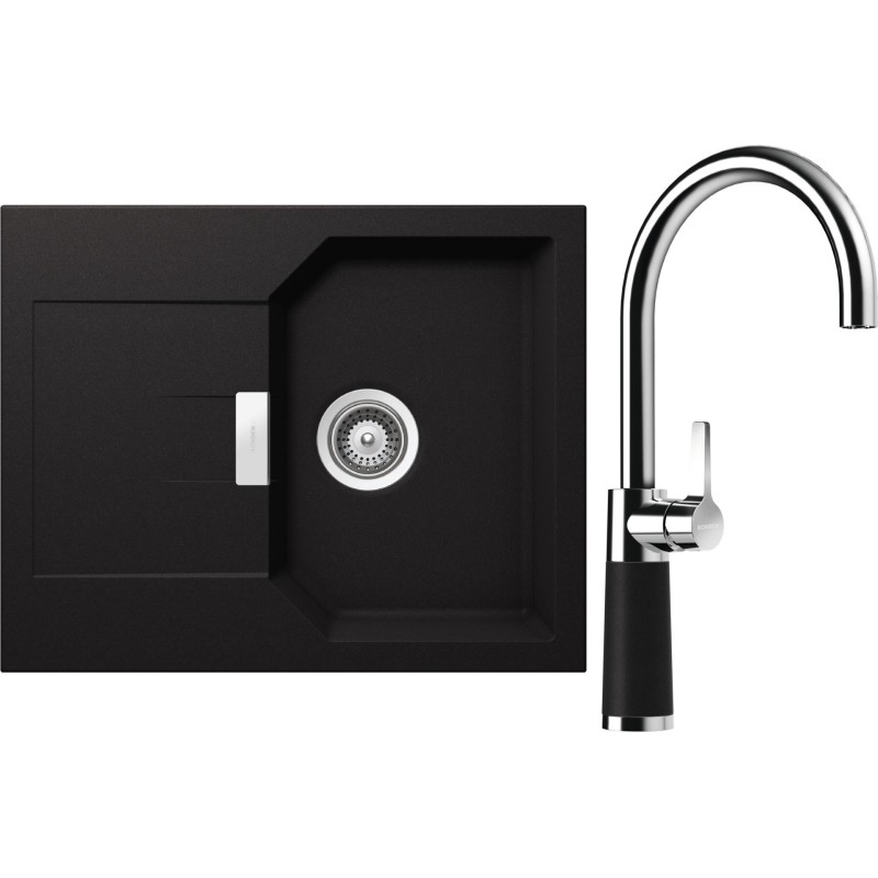 Cenově zvýhodněný set dřezu a baterie Schock S18-8 - obsahuje granitový dřez s odkapem Manhattan D-100XS Nero a baterii SC-520 Nero.