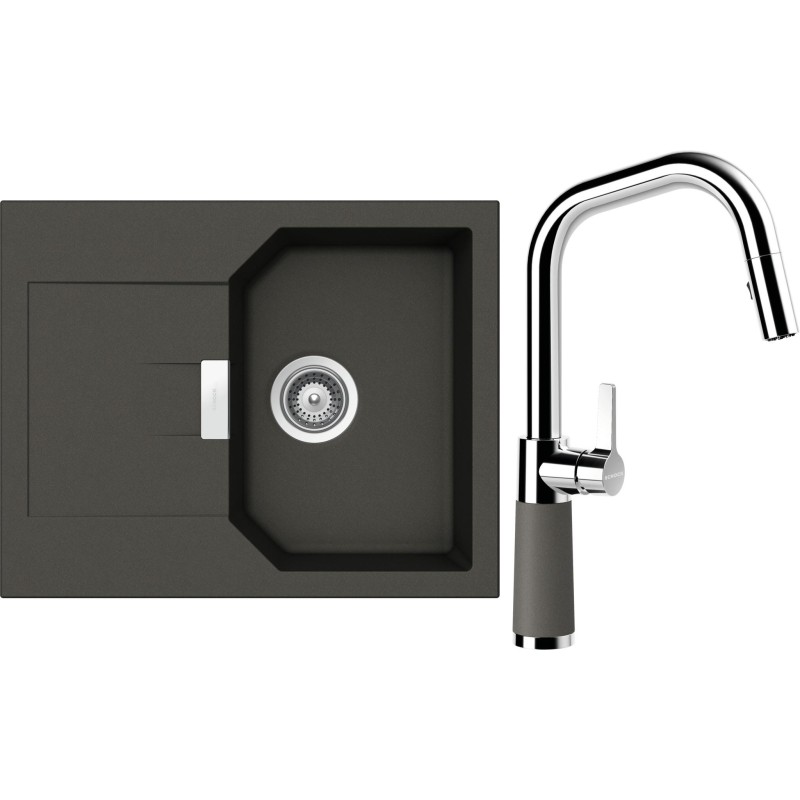 Cenově zvýhodněný set dřezu a baterie Schock S18-11 - obsahuje granitový dřez s odkapem Manhattan D-100XS Asphalt a baterii se sprchou SC-530.120 Asphalt.