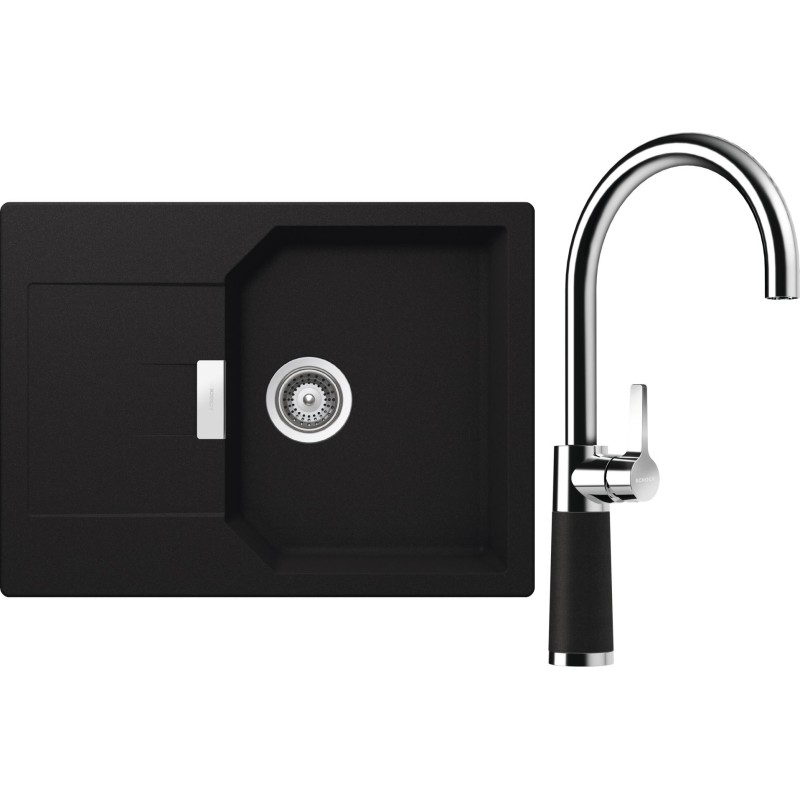 Cenově zvýhodněný set dřezu a baterie Schock S19-8 - obsahuje granitový dřez s odkapem Manhattan D-100S Onyx a baterii SC-520 Onyx.
