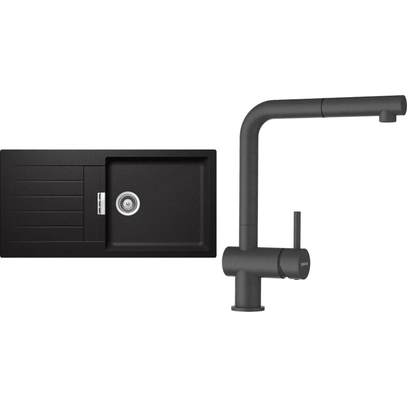 Cenově zvýhodněný set dřezu a baterie Schock S2-2 - obsahuje granitový dřez s odkapem Signus D-100L Stone a baterii s vytahovací koncovkou Epos.120 Stone.