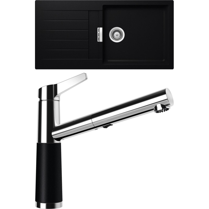 Cenově zvýhodněný set dřezu a baterie Schock S2-5 - obsahuje granitový dřez s odkapem Signus D-100L Puro a baterii se sprchou SC-510.120 Puro.