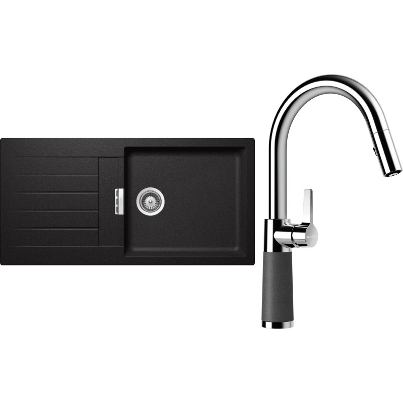 Cenově zvýhodněný set dřezu a baterie Schock S2-7 - obsahuje granitový dřez s odkapem Signus D-100L Stone a baterii se sprchou SC-520.120 Stone.