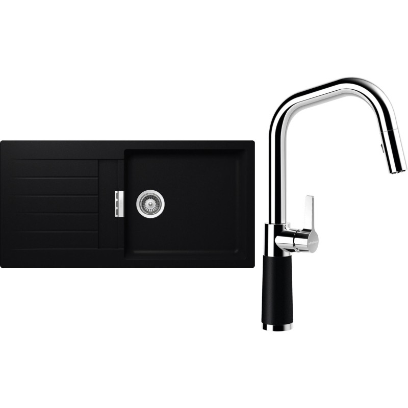 Cenově zvýhodněný set dřezu a baterie Schock S2-9 - obsahuje granitový dřez s odkapem Signus D-100L Puro a baterii se sprchou SC-530.120 Puro.