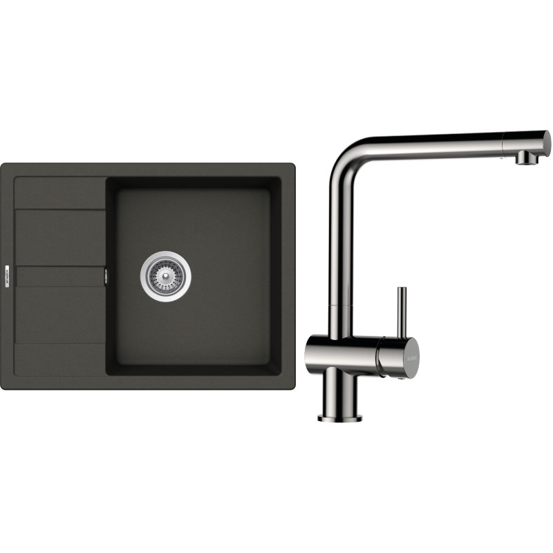 Cenově zvýhodněný set dřezu a baterie Schock S20-5 - obsahuje granitový dřez s odkapem Manhattan D-100 Asphalt a baterii Epos Nerezový vzhled.