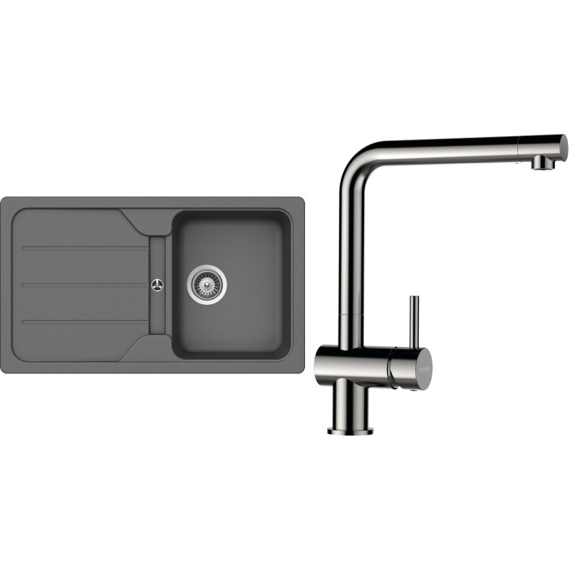 Cenově zvýhodněný set dřezu a baterie Schock S25-5 - obsahuje granitový dřez s odkapem Formhaus D-100 Croma a baterii Epos Nerezový vzhled.