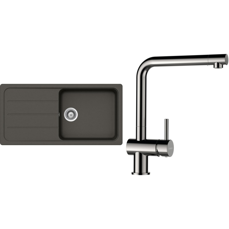 Cenově zvýhodněný set dřezu a baterie Schock S26-5 - obsahuje granitový dřez s odkapem Formhaus D-100L Asphalt a baterii Epos Nerezový vzhled.