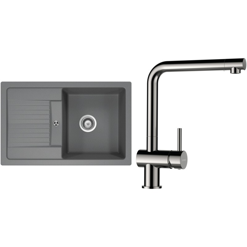 Cenově zvýhodněný set dřezu a baterie Schock S30-5 - obsahuje granitový dřez s odkapem Lima D-100S Croma a baterii Epos Nerezový vzhled.
