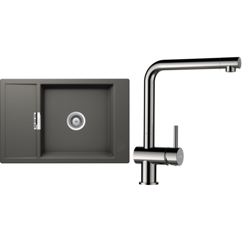 Cenově zvýhodněný set dřezu a baterie Schock S4-3 - obsahuje granitový dřez s odkapem Mono D-100XS Silverstone a baterii Epos Nerezový vzhled.