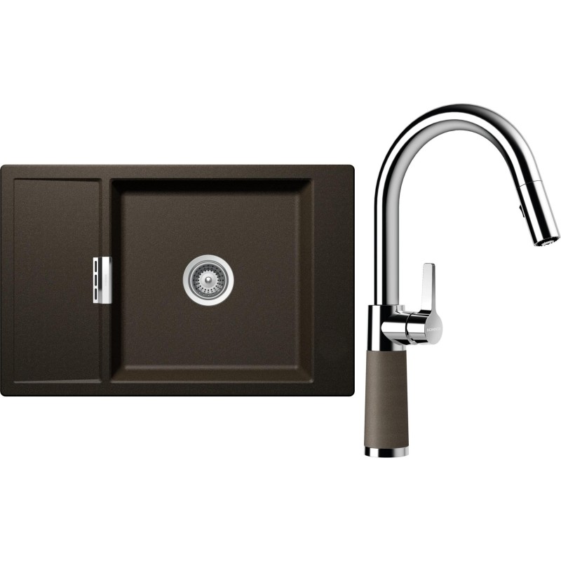 Cenově zvýhodněný set dřezu a baterie Schock S4-7 - obsahuje granitový dřez s odkapem Mono D-100XS Bronze a baterii se sprchou SC-520.120 Bronze.