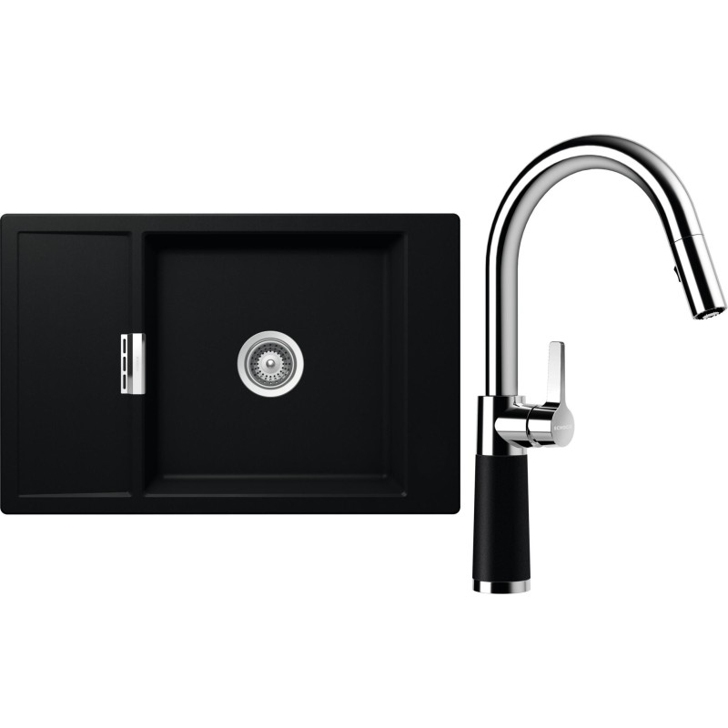 Cenově zvýhodněný set dřezu a baterie Schock S4-7 - obsahuje granitový dřez s odkapem Mono D-100XS Puro a baterii se sprchou SC-520.120 Puro.