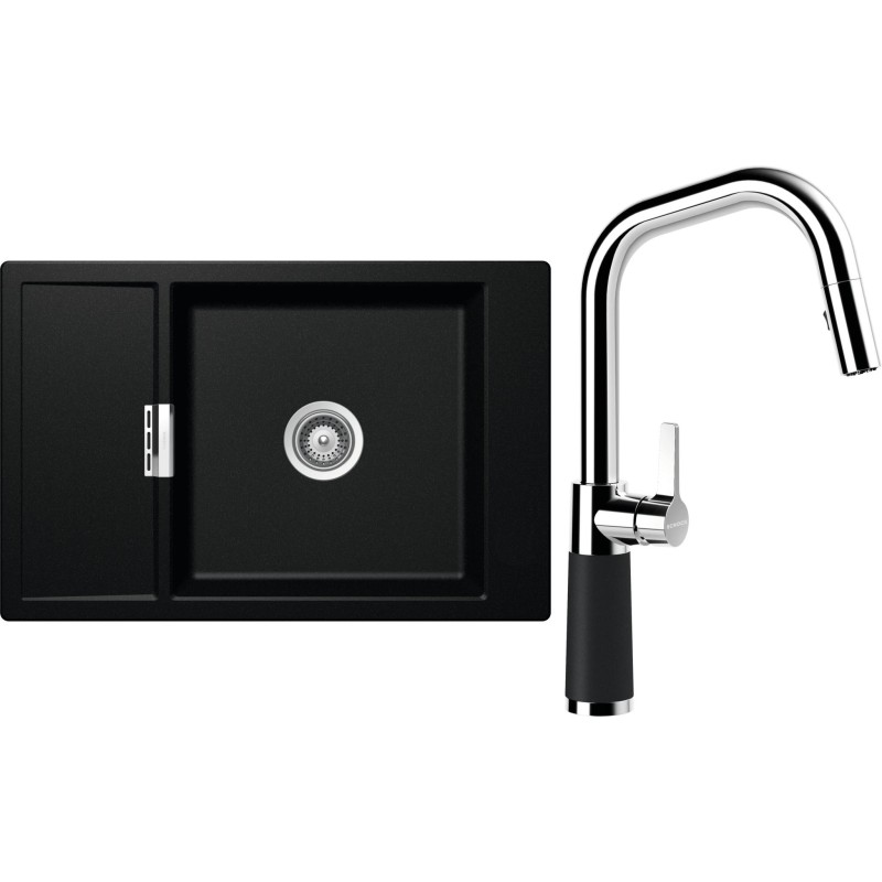 Cenově zvýhodněný set dřezu a baterie Schock S4-9 - obsahuje granitový dřez s odkapem Mono D-100XS Magma a baterii se sprchou SC-530.120 Magma.
