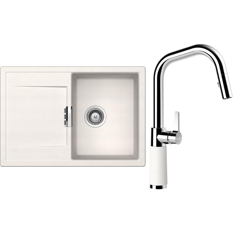 Cenově zvýhodněný set dřezu a baterie Schock S5-9 - obsahuje granitový dřez s odkapem Mono D-100S Polaris a baterii se sprchou SC-530.120 Polaris.