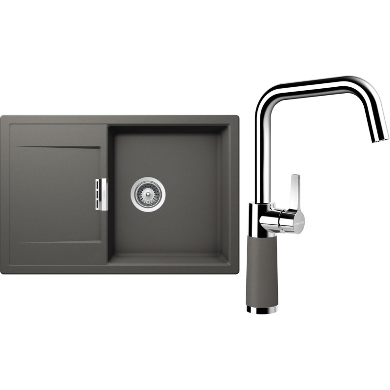 Cenově zvýhodněný set dřezu a baterie Schock S6-8 - obsahuje granitový dřez s odkapem Mono D-100 Silverstone a baterii SC-530 Silverstone.