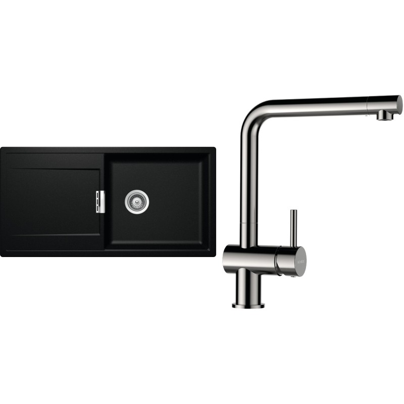 Cenově zvýhodněný set dřezu a baterie Schock S8-3 - obsahuje granitový dřez s odkapem Mono D-100L Magma a baterii Epos Nerezový vzhled.