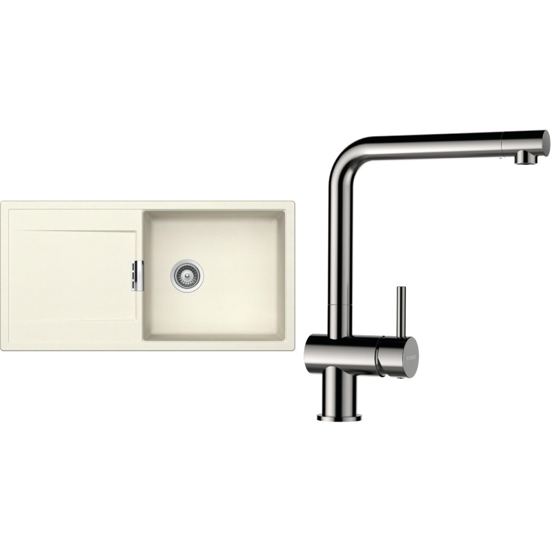 Cenově zvýhodněný set dřezu a baterie Schock S8-3 - obsahuje granitový dřez s odkapem Mono D-100L Magnolia a baterii Epos Nerezový vzhled.