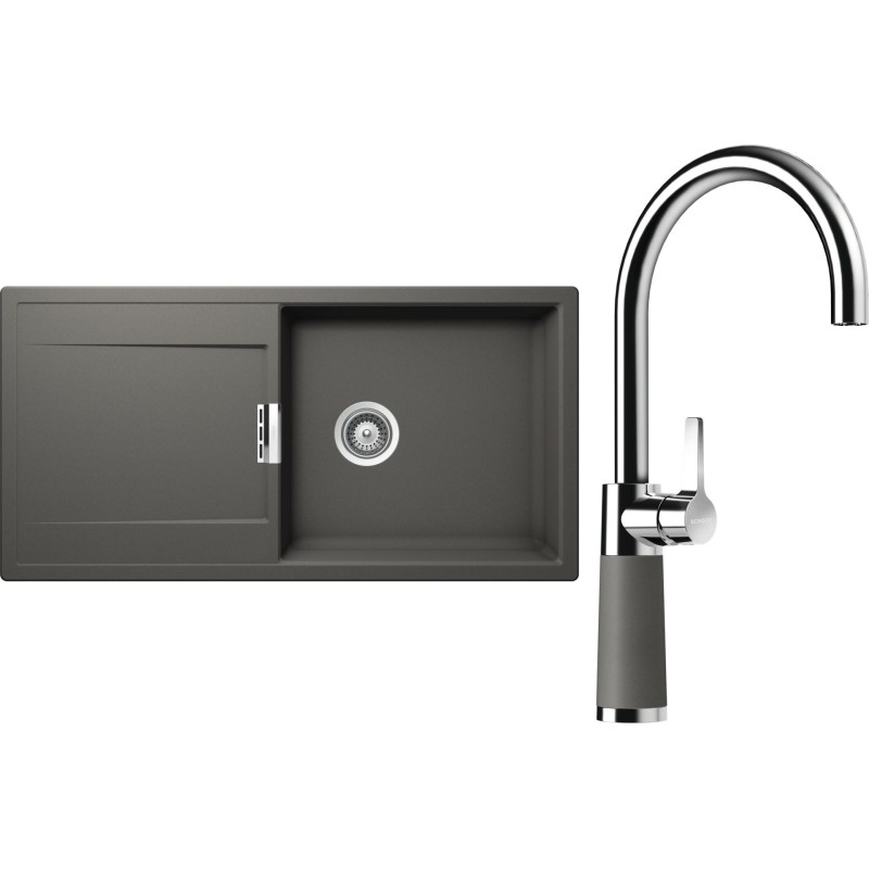 Cenově zvýhodněný set dřezu a baterie Schock S8-6 - obsahuje granitový dřez s odkapem Mono D-100L Silverstone a baterii SC-520 Silverstone.