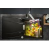 Granitový dřez s odkapem, provedení Magma, otočný, rozměr 860 x 500 mm, vana 354 x 435 x 180 mm, horní montáž, minimálně 45 cm skříňka, s excentrem.