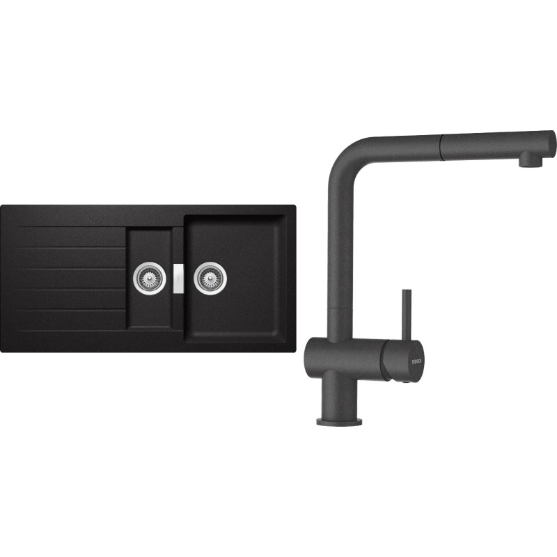 Cenově zvýhodněný set dřezu a baterie Schock S3-2 - obsahuje granitový dřez s vaničkou a odkapem Signus D-150 Stone a baterii s vytahovací koncovkou Epos.120 Stone.