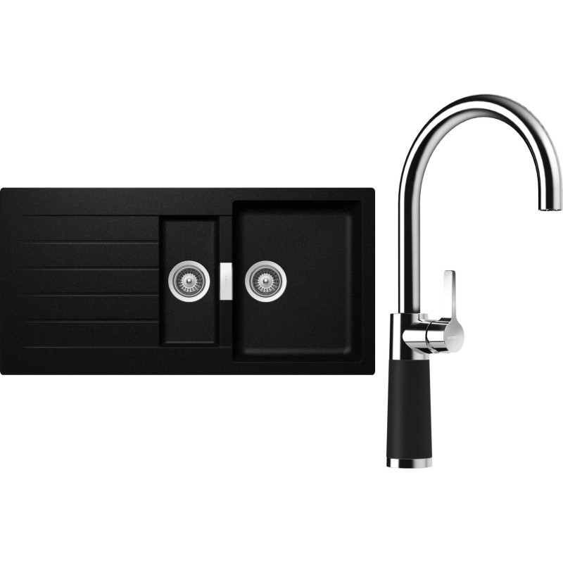 Cenově zvýhodněný set dřezu a baterie Schock S3-6 - obsahuje granitový dřez s vaničkou a odkapem Signus D-150 Magma a baterii SC-520 Magma.