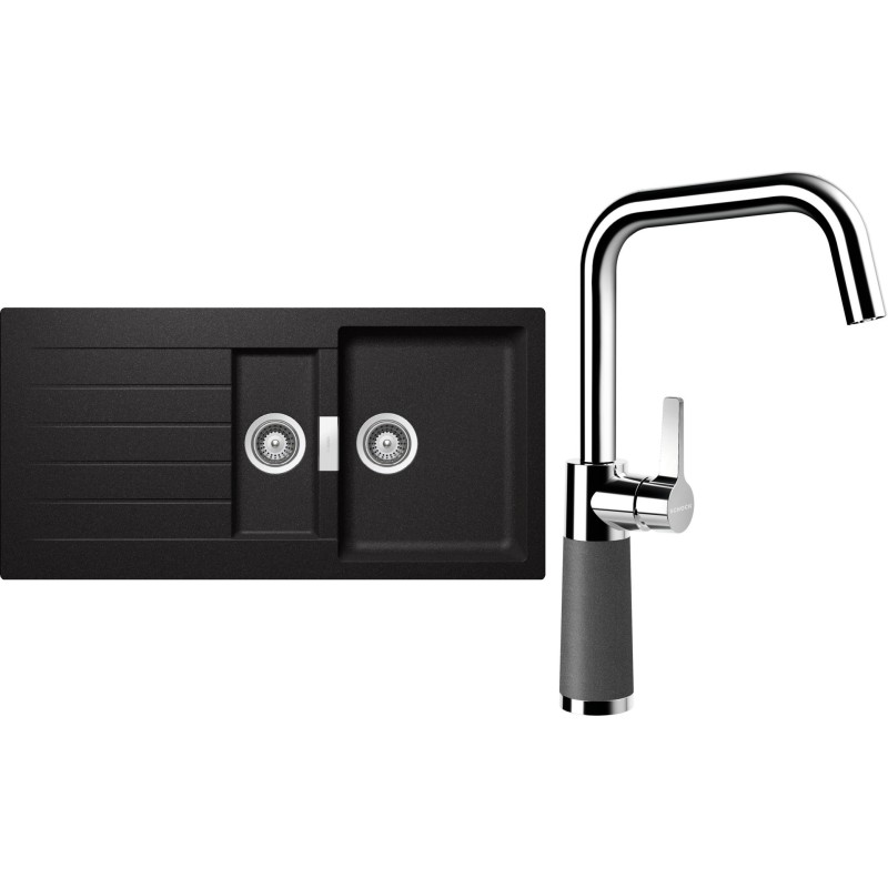 Cenově zvýhodněný set dřezu a baterie Schock S3-8 - obsahuje granitový dřez s vaničkou a odkapem Signus D-150 Stone a baterii SC-530 Stone.