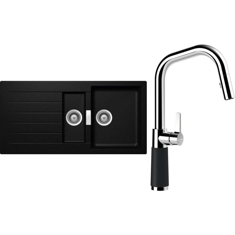 Cenově zvýhodněný set dřezu a baterie Schock S3-9 - obsahuje granitový dřez s vaničkou a odkapem Signus D-150 Magma a baterii se sprchou SC-530.120 Magma.