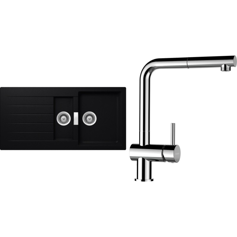 Cenově zvýhodněný set dřezu a baterie Schock S3-13 - obsahuje granitový dřez s vaničkou a odkapem Signus D-150 Puro a baterii s vytahovací koncovkou Epos.120 Chrom.