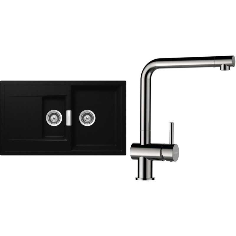 Cenově zvýhodněný set dřezu a baterie Schock S7-3 - obsahuje granitový dřez s vaničkou a odkapem Mono D-150 Puro a baterii Epos Nerezový vzhled.